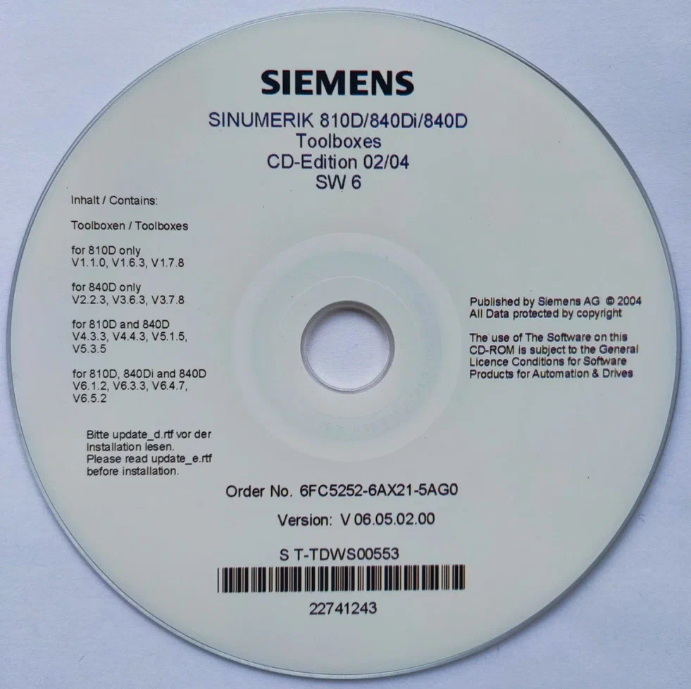 SIEMENS SINUMERIK ToolBoxes 810D 840Di 840D - V6.5.2 6FC5252-6AX21-5AG0 This CD contains three types of Toolboxes
