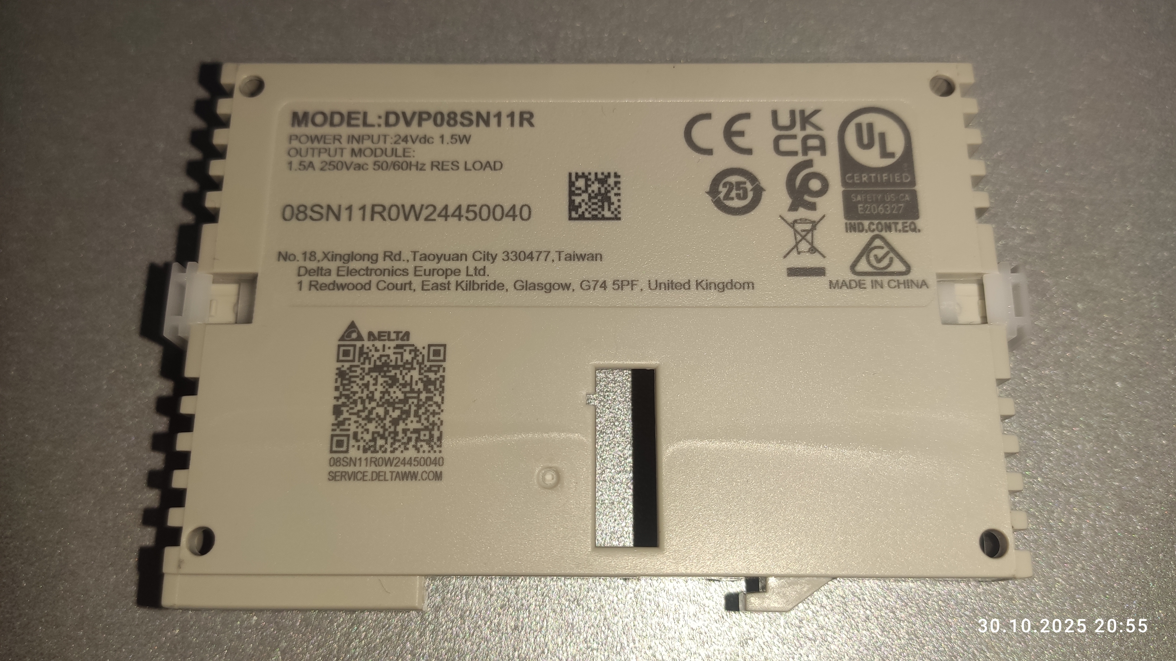 Delta DVP08SN11R Relay Output Module Panasonic APAN3124 Power Input 24VDC 1,5W / RES LOAD 1,5A 250VAC или 5A 30 VDC | |