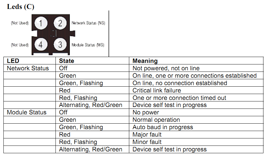 Field bus: the device net of the AB4004 card has a led blinking sequence from red to green. Finally if the left