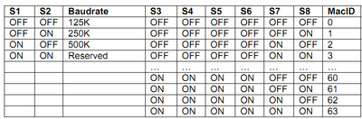 between 0 an 63 used to identify each node. The Mac ID and Baud rate settings can be set either using a