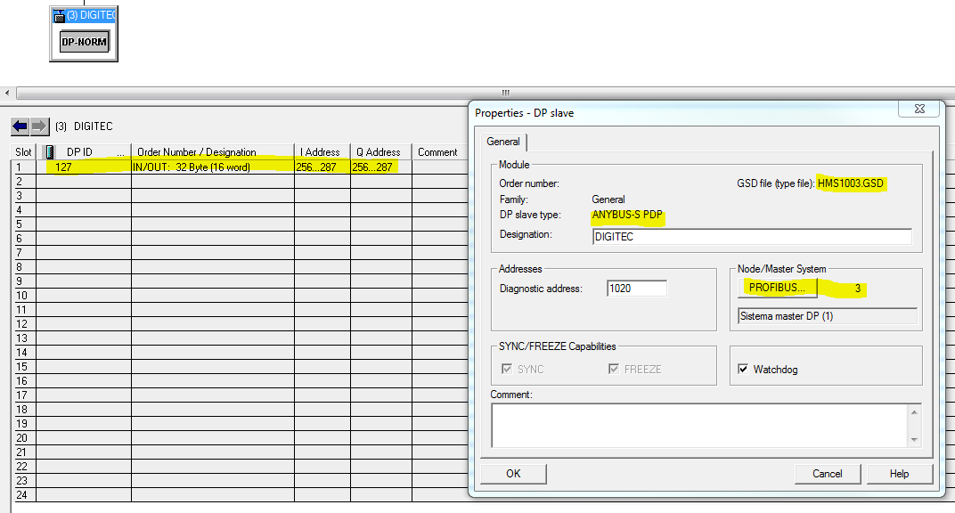 SIEMENS STEP7 HMS1003.GSD ANYBUS-S PDP - Конфигурация Hardware