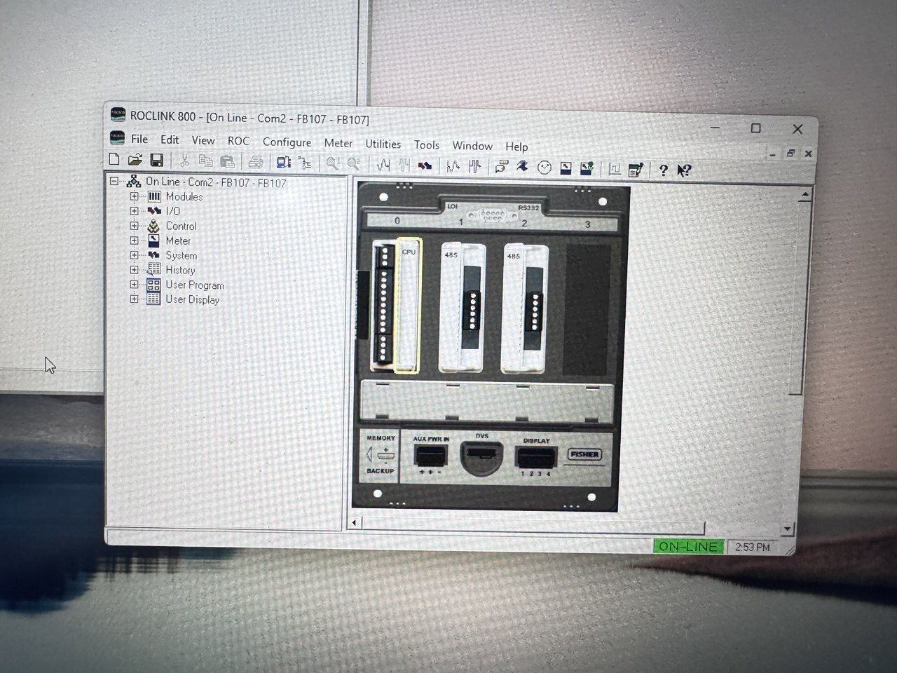 Пользоваться программой ROCLINK 800 легко. Раскрывающиеся меню упрощают доступ к функциям,