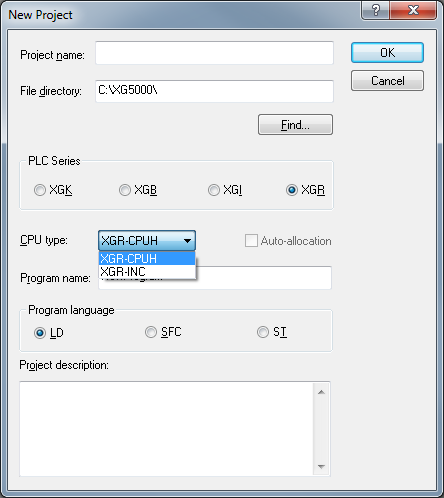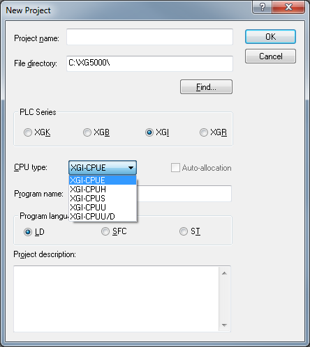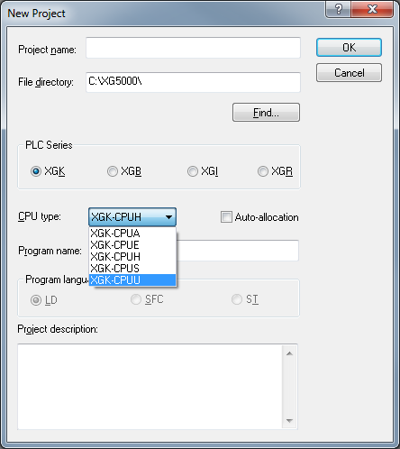 LS Industrial Systems LS XG5000 V3.67 Supported PLC XGK XGB XGI XGR File format of project - *.xgp XG5000(IEC)Help_eng.pdf - XG5000 XGT Series User’s Manual For XGK / XGB XGI_R_Instruction_Help_eng.pdf - XGI/XGR/XEC Instructions and Programming User’s Manual XGK_B_Instruction_Help_eng.pdf - XGK/XGB Instructions and Programming User’s Manual LS XG5000 XGK CPU